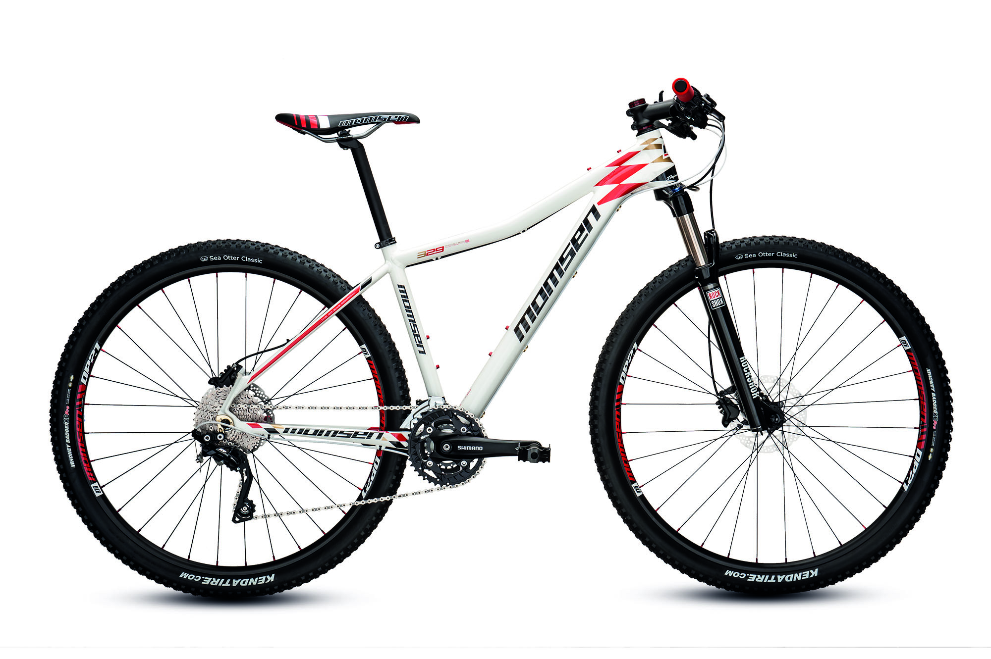 Victor Momsen prides himself on giving riders additional value by complementing his race-ready framesets with features that make Momsens trail-ready from the get-go. When it comes to the AL329, this means a set of tubeless-ready Alex rims, and Kenda SCT tyres that are designed for tubeless – saving you time and admin. An integrated top-tube bag is another great feature, for carrying all your essentials while keeping your back pockets free of clutter. Another small detail: red, Momsen-branded silicone race grips add a touch of flair and comfort to the package.
