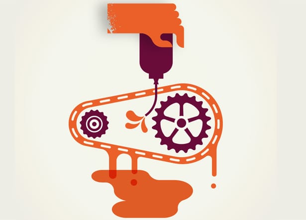 What Happened: You may be an over luber, and the excess sticky stuff is attracting grime to the chain and cassette. First clean, rinse, and dry your chain and cassette (the gears in the back). You can buy bike-specific degreasers and chain-cleaning gizmos, but dish soap and a toothbrush work, too. Next, carefully apply one drop (more is not better) of lube onto each roller as you turn the cranks backward for two or three rotations. Finally, take a clean rag and gently grip the chain’s outer plates as you spin the cranks for one more rotation. Keep going until you’ve wiped off all the excess lube—it should be mostly inside the chain on the rollers, not on the outside where it can attract dirt.