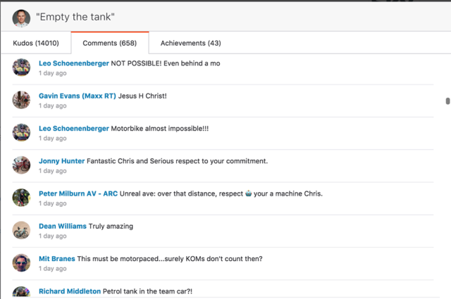 Whether that was really the case, no one knows for sure. Allen notes that it would make the ride, which some are calling impossible, “totally doable.” That said, the Strava community frowns on taking KOMs with the aid of a motor draft, so the five crowns Froome bagged on his big day out have been removed from the leaderboard while the ride is under question.