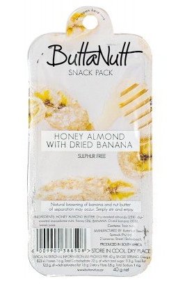 BUY NOW > Buttanutt Honey Almond with Dried Banana – Snack Pack, R24
